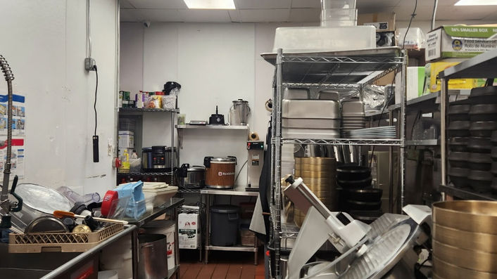 Fully equipped with kitchen equipment, hood, and grease trap.
